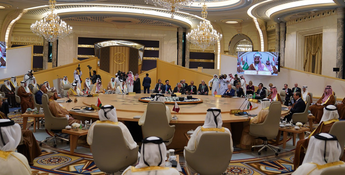 [프레스뉴스] 채정병 특파원=16일(현지시간) 사우디 아라비아 제다에서 열린 걸프 협력 협의회(GCC) 안보 및 개발 정상회담이 조 바이든(가운데) 미국 대통령이 참가한 가운데 진행되고 있다. (사진=요르단 왕실 제공)