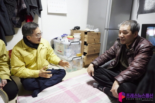 [프레스뉴스] 장현준 기자= 9일 경기도 전역에 한파특보가 발효된 가운데 김동연 경기도지사가 수원시 팔달구 행궁동 주거취약세대(쪽방촌)를 찾아 신속한 난방비 지원을 약속했다.