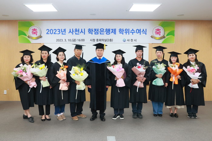 [프레스뉴스] 정재훈 기자= 사천시는 지난 10일 ‘2023년 학점은행제 학위수여식’을 열고, 학점은행제를 통해 교육부 장관 명의의 학위를 취득한 17명(행정학사 10명, 행정전문학사 7명)에게 학위증을 전수했다. 이날 학위수여식에는 학위취득자 10명이 참석했다.
