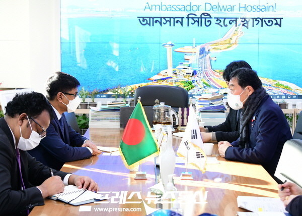 [프레스뉴스] 장현준 기자= 윤화섭 안산시장은 4일 집무실에서 델와르 호세인(Delwar Hossain) 주한 방글라데시 대사를 만나 환담했다.
