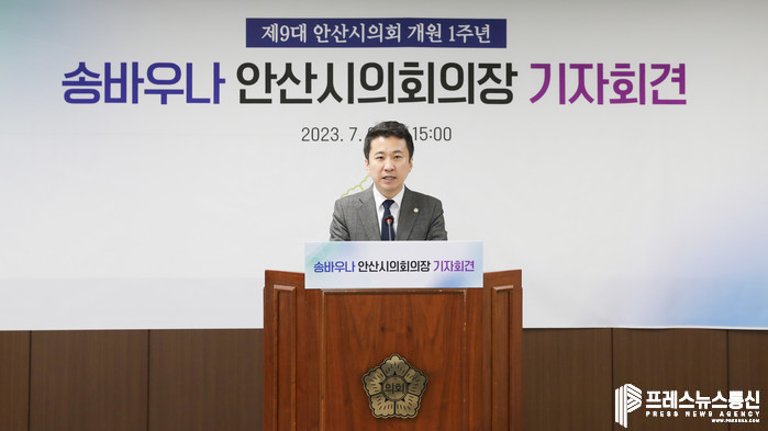 [프레스뉴스] 김대일 기자= 안산시의회 송바우나 의장이 3일 제9대 의회 개원 1주년 기자회견을 열어 “특별한 꿈이 없어도 시민들이 살만한 가치가 있다고 느끼며 약자라는 이유로 소외당하거나 차별받지 않는 지역공동체를 형성하는 데에 앞장서겠다”고 다짐했다.
