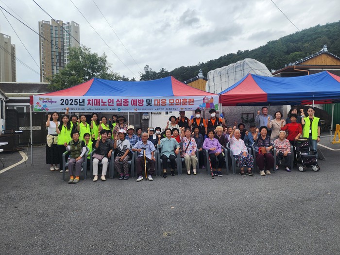 훈련은 실제 치매 환자의 실종 상황을 가정해 ▲실종신고 접수 ▲현장 출동 및 수색 ▲배회자 발견 ▲건강 상태 확인 ▲보호자 인계의 순서로 실전처럼 진행됐다.