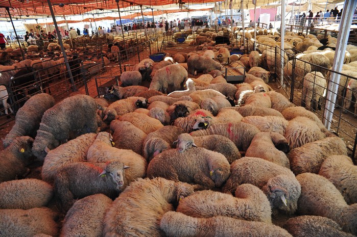 [프레스뉴스] 채정병 특파원=9일(현지시간) 이슬람권 최대 명절인 이드 알 아드하(희생제) 첫날, 요르단 암만의 한 양시장에서 양들이 웅크리고 있다