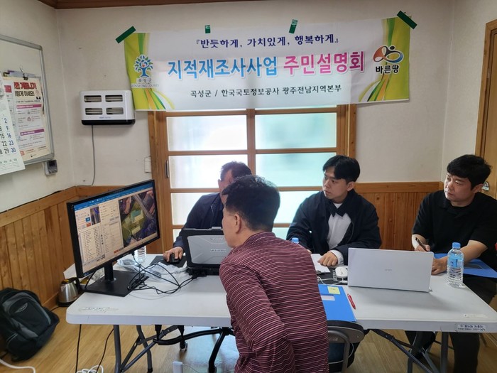 이번 설명회는 곡성군이 새롭게 측량한 결과로 작성된 확정예정통지서를 토지 소유자에게 송부하기에 앞서 마련한 자리였다. 각 필지에 대한 측량 결과를 토지소유자 및 이해관계인에게 설명하고 의견을 청취하는 시간을 가졌다. 참석한 토지소유자들은 측량 결과를 직접 눈으로 확인하고 궁금한 사항을 질문하는 등 적극적인 모습을 보였다.