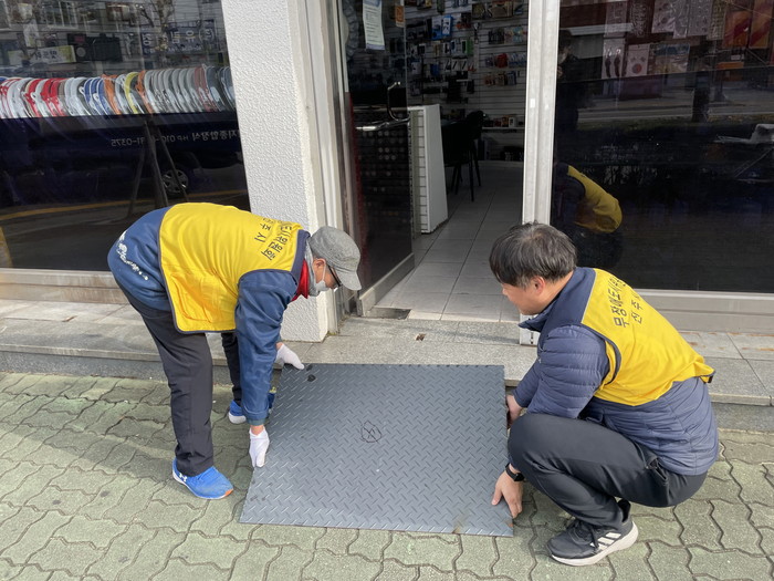 ▲진주시, 무장애도시 성북동위원회가 장애 없는 도시를 만들기 위해 출입구 낮추기 사업을 실시했다.(사진=진주시) |