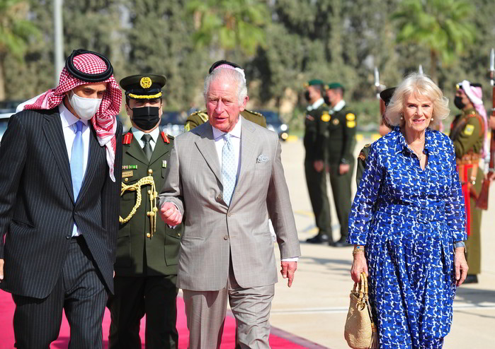 [프레스뉴스] 채정병 특파원=18일(현지시간) 영국 찰스 왕세자 부부가 2박3일 간의 요르단 공식 일정을 마치고 다음 방문국인 이집트로 떠나기 전 공항에서 배웅나온 가지 왕자와 이야기를 나누고 있다.