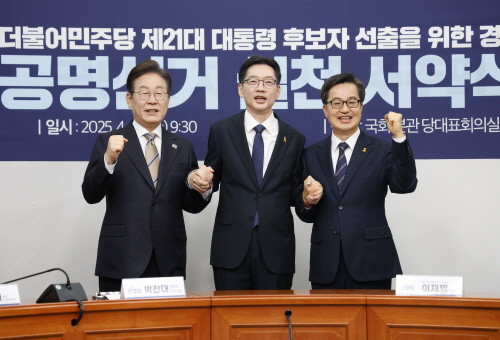 [프레스뉴스] 강보선 기자= 더불어민주당 대선 경선에 나선 이재명·김경수·김동연 후보가 본격적인 경쟁에 앞서 정권교체를 위한 단합을 약속했다.