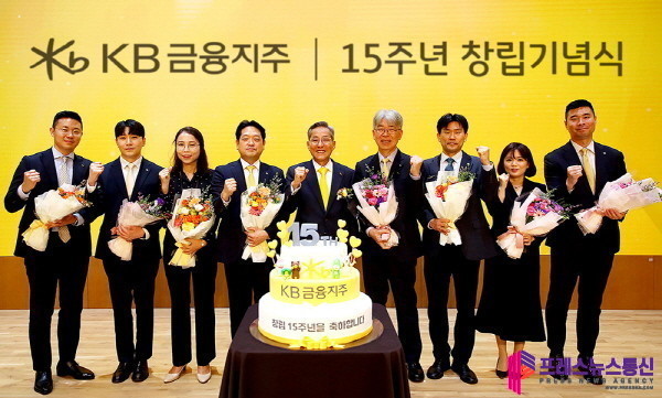[프레스뉴스] 김대일 기자= KB금융지주는 27일 오전 KB국민은행 여의도 본점 신관에서 임직원 70여 명이 참석한 가운데 창립 15주년 기념식을 가졌다. 이 날 행사는 YouTube로도 생중계 되었으며, 10년, 20년, 30년 간 장기 근속한 직원을 대상으로 감사의 뜻을 담은 공로패 전달식도 함께 진행되었다.