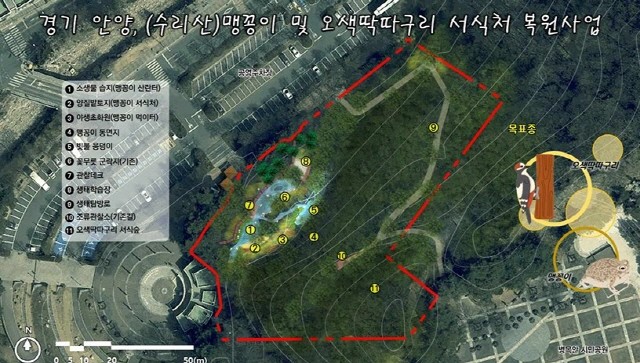 | ▲병목안시민공원 맹꽁이 오색딱따구리 서식처 복원사업 기본계획도(사진=안양시) |