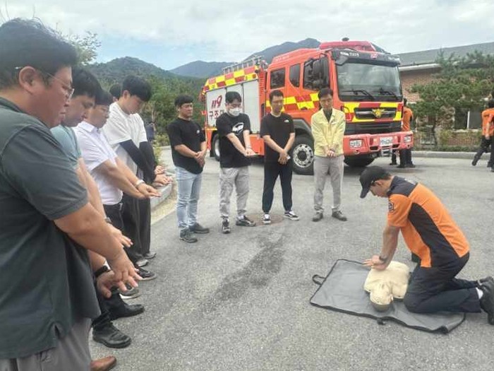 ▲밀폐공간 질식사고 합동 대응훈련 응급조치 교육 장면(사진제공=화순군) |