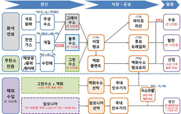 암모니아-수소 추출플랜트와 액체수소 인수기지 및 수소 전용 배관망 등 핵심기술도 국산화해 수소 생태계를 완성해 나갈 예정이다. 이를 위해 최근 4년 동안 3345억 원 규모로 연구개발 예산을 투자했고, 앞으로도 수소 생산 역량 확대 및 수소 유통 인프라 분야에 지속 투자해 나간다.