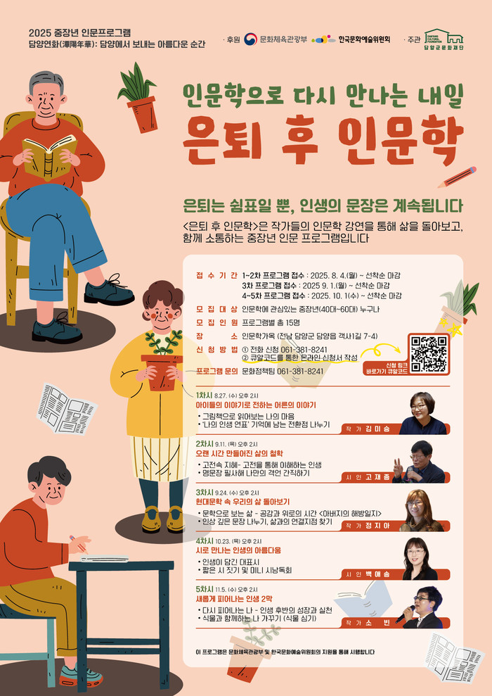 ▲2025 중장년 인문 프로그램 ‘은퇴 후 인문학’ 포스터(사진제공=담양군) |