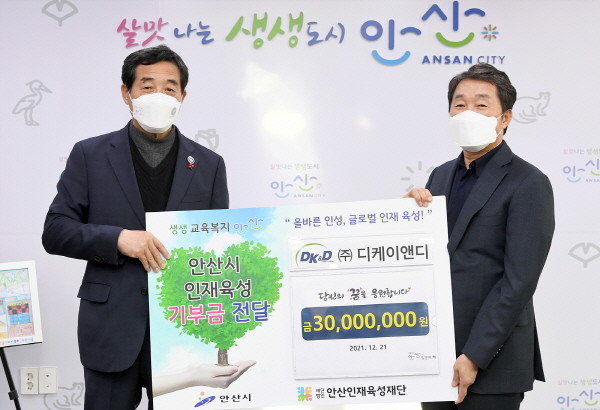 | ▲ 안산인재육성재단, ㈜디케이앤디로부터 기부금 3천만 원 기탁 받아(사진=안산시) |