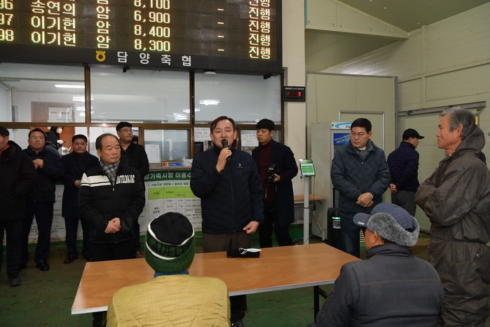 | ▲이병노 담양군수, 설 앞두고 가축시장 현장 방문 (사진제공=담양군) |