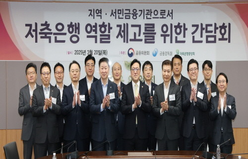 | ▲김병환 금융위원회 위원장 및 참석자들이 20일 정부서울청사에서 열린 지역·서민금융기관으로서 저축은행 역할 제고를 위한 간담회에서 기념촬영을 하고 있다.(사진= 뉴스1) |