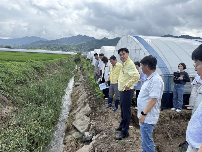 ▲관내 집중호우로 인한 피해 현장을 점검하고 있는 조상래 곡성군수 (사진제공=곡성군) |