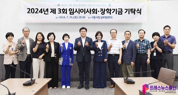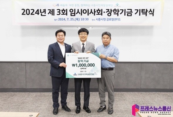 [프레스뉴스] 장현준 기자= (재)시흥시인재양성재단(이사장 임병택)은 지난 25일 시청 글로벌센터에서 ‘2024년 제3회 임시이사회와 장학기금 기탁식’을 열었다.