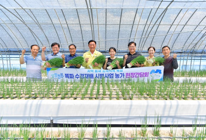 [전남=프레스뉴스] 박정철 기자=장성군이 21일 삼계면 화산리 쪽파 수경재배 시범농가에서 현장간담회를 가졌다.