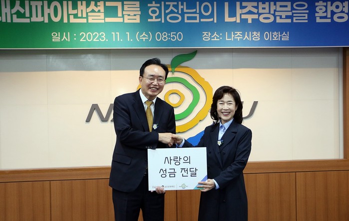 | ▲대신파이낸셜그룹과 사랑의 성금 전달식/나주시 제공 |