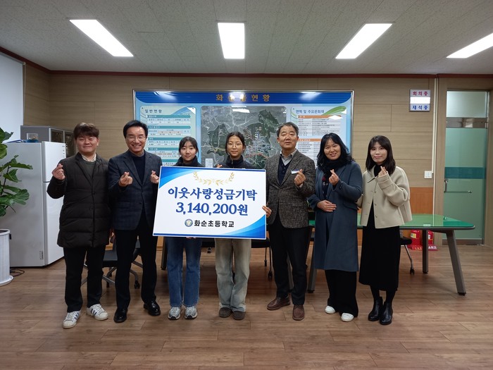 서봉섭 화순읍장은 “학생들이 기부문화를 익히도록 도와주신 교장 선생님과 어려운 이웃 및 환경에 대해 생각하는 마음을 가진 학생들에게 감사드린다”라며, “이번 기부로 사회구성원으로서의 자긍심을 가질 수 있는 뜻깊은 시간이 되기를 바란다”라고 감사를 표했다.