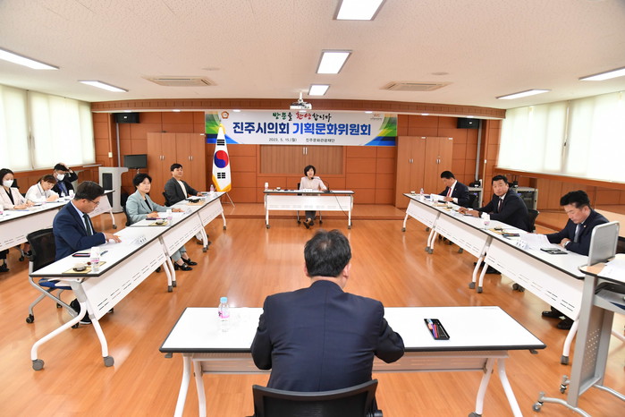 | ▲ 기획문화위원회 위원들이 진주문화관광재단을 방문해 업무보고를 받고 있다.(사진=진주시의회) |
