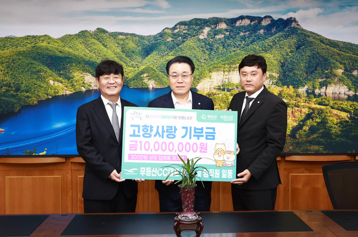 ㈜무등산골프앤리조트 이승 대표는 “이번 고향사랑기부로 지역 사회와의 깊은 유대감을 형성하고, 화순군의 발전과 주민들의 복지 향상에 조금이라도 기여할 수 있어 기쁘다”라며, “답례품으로 받은 쌀(10kg) 100포도(300만 원 상당) 취약계층에 재기부하고, 기업의 사회적 책임 실현에 앞장서겠다.”라고 말했다.