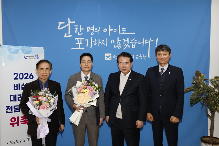 [광주=프레스뉴스] 강래성 기자= 광주시교육청(교육감 이정선)은 3일 본청 교육감실에서 노강규, 현길환 변호사를 ‘비실명 대리신고 전담 변호사’로 위촉했다.