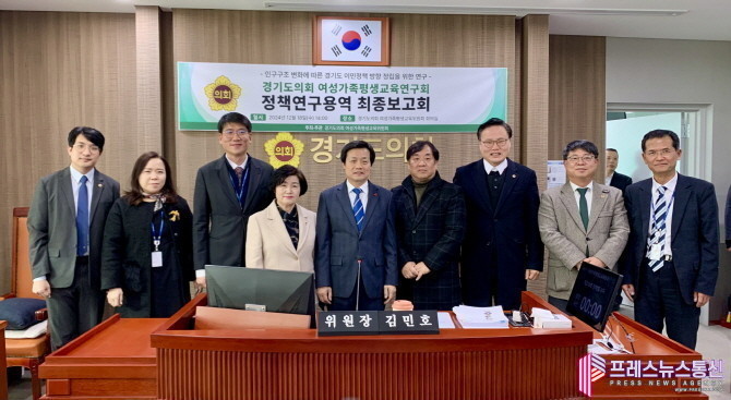 [프레스뉴스] 류현주 기자= 경기도의회 여성가족평생교육연구회(회장 문형근 위원장)는 18일(수) 여성가족평생교육위원회 회의실에서 ‘인구구조 변화에 따른 경기도 이민정책 방향 정립을 위한 연구’에 대한 정책연구용역 최종보고회를 개최하였다.