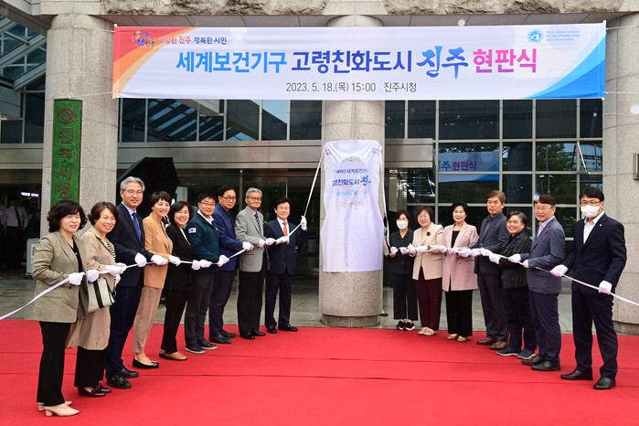 현판식에는 조규일 진주시장, 양해영 진주시의회 의장과 의원들, 고령친화도시 조성위원회 위원들이 참여해 WHO 고령친화도시 인증을 축하하고, 지속적으로 고령친화도시를 조성해 나가기 위한 의지를 표명했다.