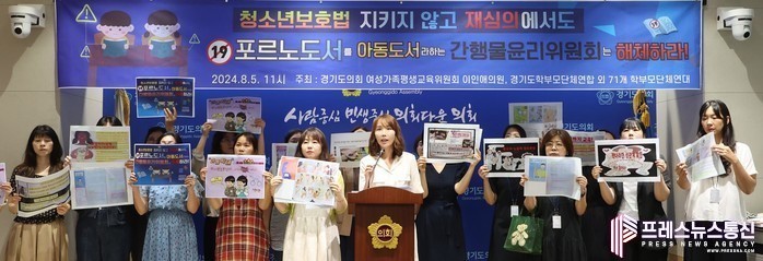 [프레스뉴스] 류현주 기자= 경기도의회 여성가족평생교육위원회 이인애 의원(국민의힘, 고양2)은 5일 경기도의회 기자회견실에서 경기도학부모단체연합과 전국 17개 지역 71개 학부모 단체와 함께 「부적절 성교육 도서에 대한 간행물윤리위원회 심의 결과」에 대해 지난 3월에 이어 2차 규탄 기자회견을 개최했다.