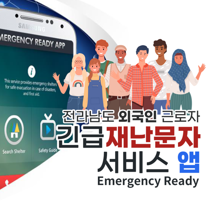그 밖에도, 외국인 고용 기업을 대상으로 행정안전부에서 개발한 외국인 긴급 재난문자 알림서비스 “이머전시 레디 앱(Emergency Ready App)”도 함께 홍보하고 있다. 이머전시 레디 앱은 외국인 주민이 자국의 언어로 신속하게 재난·안전 정보를 제공받고 빠르게 대처할 수 있도록 영어, 중국어, 일본어, 베트남어, 태국어 등 주요 외국어로 긴급재난문자를 연계 발송하고 있다. 앱은 핸드폰 앱스토어 검색창에 ‘이머전시 레디 앱(Emergency Ready App)’을 입력하여 내려받을 수 있다.