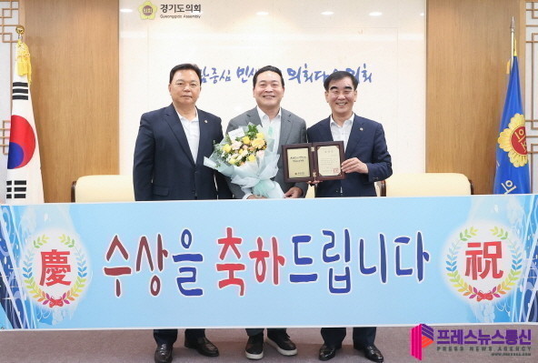 이날 수여식에는 염종현 의장과 이기환 도의원(더민주, 안산6), 표창 수상자인 최은수 ㈜인텔리빅스 대표이사가 참석했다.