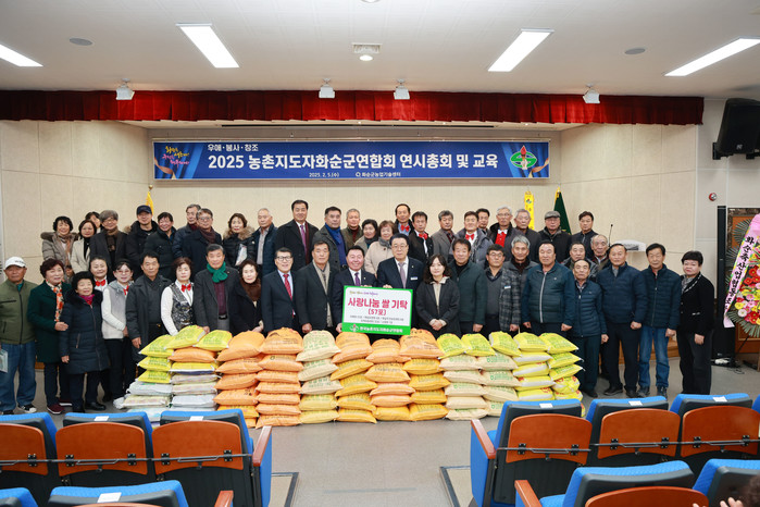행사에서 한국농촌지도자화순군연합회는 지역사회 공헌 활동으로 57포의 쌀을 기부, 화순자애원·햇살요양원·햇살주간보호센터 등 지역 복지시설에 따스한 온기를 전달했다.