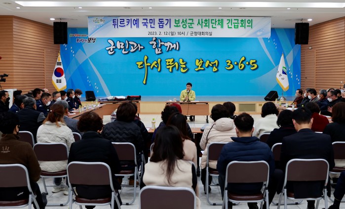 [전남=프레스뉴스] 강래성 기자= 보성군은 12일 휴일임에도 불구하고 강진으로 큰 피해를 입은 튀르키예 국민들에게 방한의류를 시급히 지원하기 위해 사회단체 긴급회의를 갖고 전 군민을 대상으로 구호물품을 모집한다.