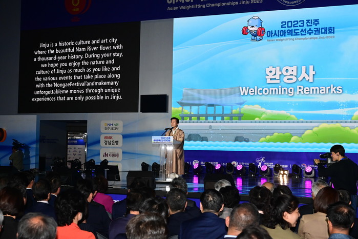 조규일 진주시장은 환영사에서 “대한민국 진주를 방문해 주신 참가자 여러분의 열정과 성원으로 2023 진주아시아역도선수권대회가 사상 최대 규모로 열리게 된 것을 영광으로 생각한다”며 “아름다운 남강이 흐르는 천년의 역사를 지닌 문화예술도시인 진주가 올림픽을 향한 여러분의 노력이 결실을 맺는 감동의 현장이 되기를 진심으로 기원한다”고 말했다.