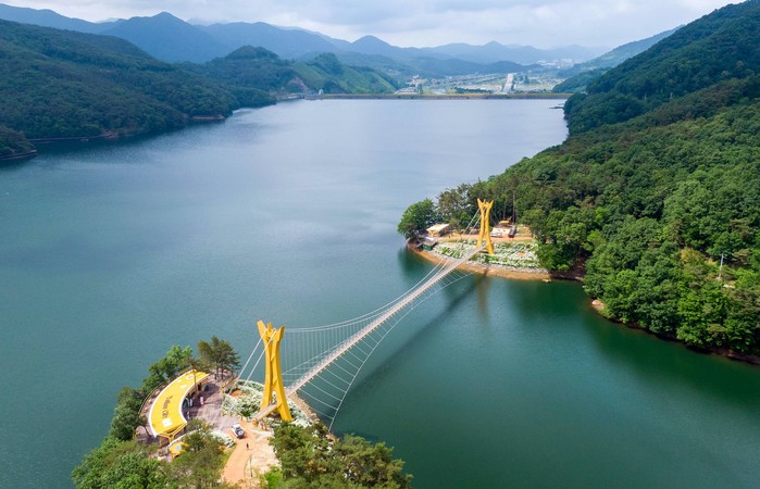 ▲장성호 수변길 옐로우출렁다리(사진제공=장성군) |