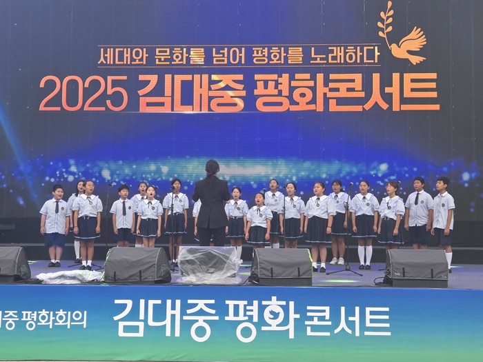 ▲너나우리합창단은 2025 김대중평화회의 평화콘서트에 참여해 아름다운 하모니를 통해 김대중 대통령이 강조 한 화합과 공존의 메시지를 전했다[사진=진도교육지원청] |