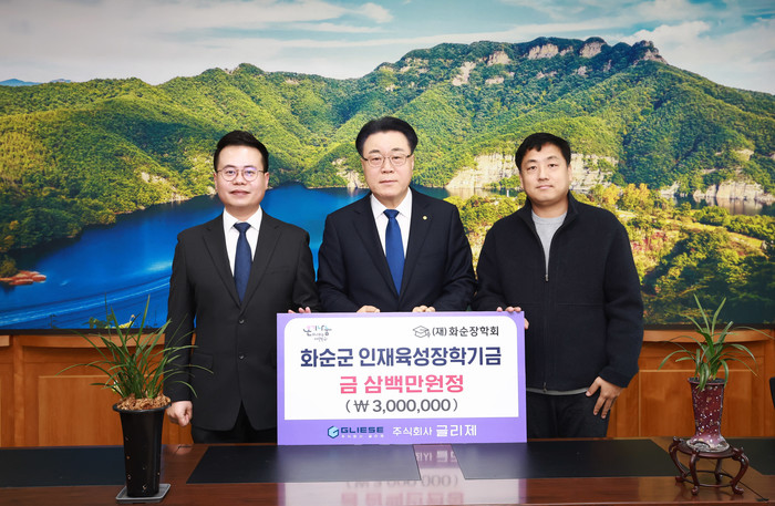 | ▲㈜글리제, 화순 지역 인재 양성을 위한 장학금 기탁 (사진제공=화순군) |