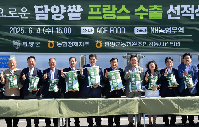 이날 행사에는 정철원 담양군수, 장명영 담양군의회 의장, 김범진 농협중앙회 총회의장 등 30여 명이 참석했으며, 프랑스 파리로 ‘풍요로운 담양쌀’ 18톤이 선적됐다.