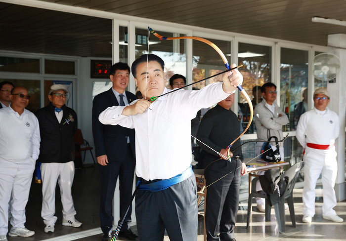| ▲구복규 화순군수 활쏘기 시연(사진제공=화순군) |