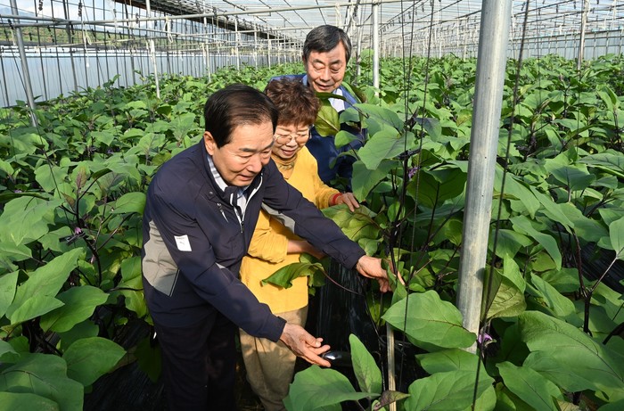 성 군수는 작물 생육 및 영농 추진 상황을 점검하며 현장의 애로사항을 청취했다.