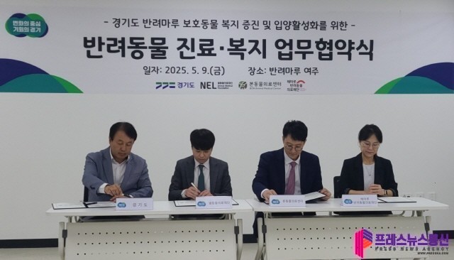 [프레스뉴스] 류현주 기자= 경기도는 9일 반려마루 여주에서 도내 동물의료기관인 넬동물의료재단, 본동물의료센터, 해마루반려동물의료재단과 반려동물 진료·복지 지원을 위한 업무협약을 체결했다.