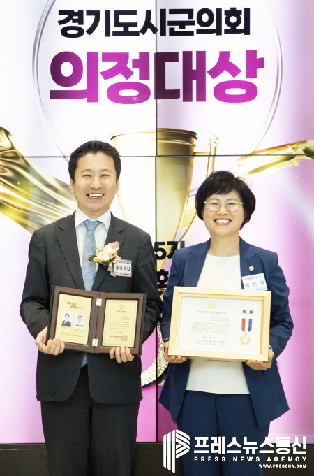 경기도시·군의회의장협의회가 주최한 이날 시상식에는 두 의원을 포함해 수상자와 축하객 등 200여명이 참석했다.