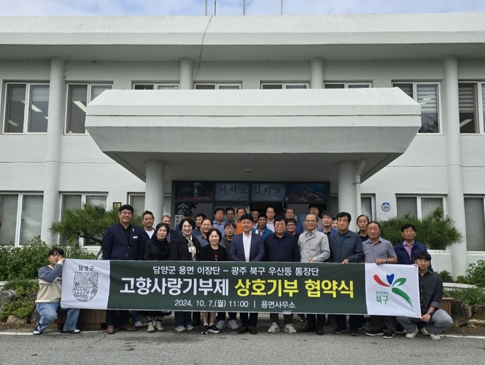 [전남=프레스뉴스] 박정철 기자=전남 담양군 용면 이장단과 광주광역시 북구 우산동 통장단이 고향사랑기부제의 활성화와 상생 발전을 위해 서로의 지자체에 고향사랑기부금을 상호 기부했다.
