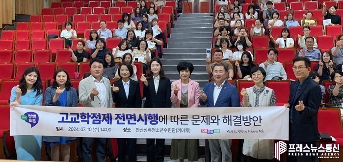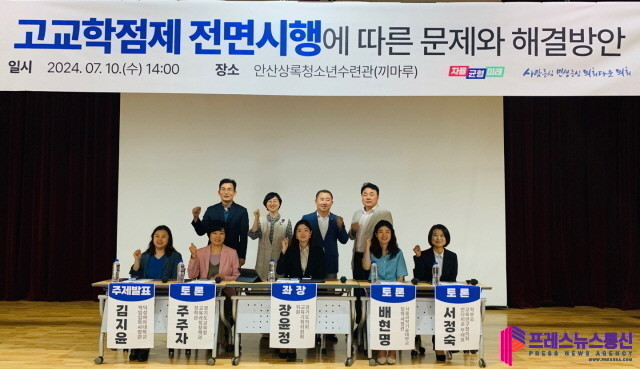 [프레스뉴스] 류현주 기자= 경기도의회 교육기획위원회 장윤정 위원(더불어민주당, 안산3)이 좌장을 맡은 「고교학점제 전면시행에 따른 문제와 해결방안」토론회가 7월 10일(수) 안산상록청소년수련관 끼마루에서 개최됐다. 본 토론회는 경기도교육청과 경기도의회가 공동으로 주최하는 ‘2024 경기교육 정책토회’의 일환으로 개최되었다.