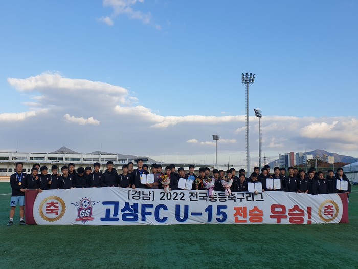 팀 창단 3년 차를 맞이한 고성FC U-15는 10월 30일 고성군 스포츠파크 3구장에서 열린 경남2022 전국중등축구리그 마지막 경기에서 경남합천FC U-15를 4-2로 꺾고 13경기 13승 72득점 7실점하며 전승으로 리그를 제패했다.