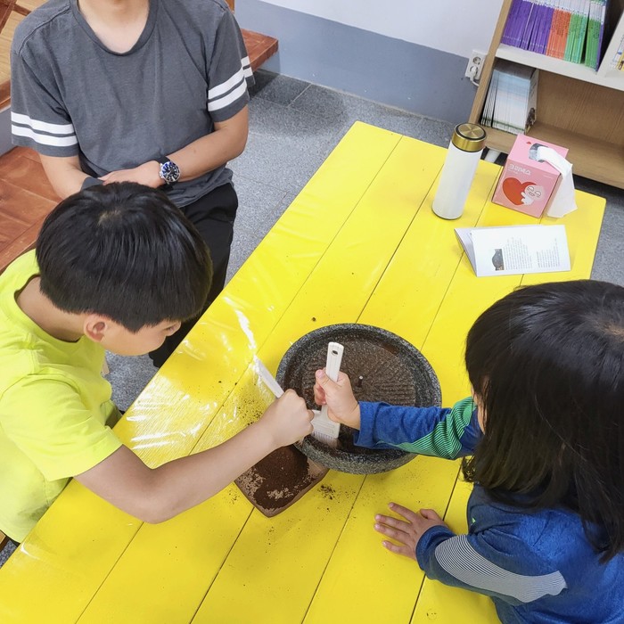 | ▲맷돌 커피 체험 사진 맷돌 커피 만들기를 체험하는 사람들(사진제공=화순군) |