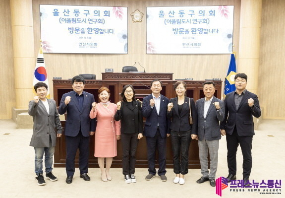 [프레스뉴스] 류현주 기자= 안산시의회 의원들이 7일 울산광역시 동구의회 의원연구단체 소속 의원들을 대상으로 안산시의회 현황과 안산시의 외국인 정책에 대해 소개하는 시간을 가졌다.