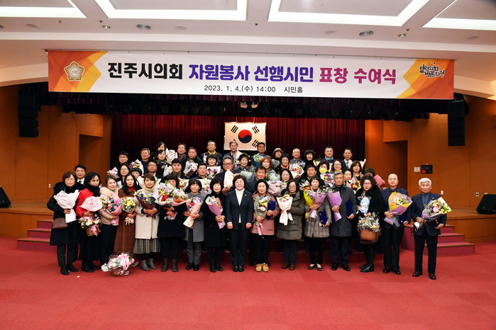 [프레스뉴스] 정재훈 기자= 진주시의회가 지난 4일 시청 시민홀에서 2022년 하반기 우수 자원봉사 선행시민들과 함께 표창 수여식을 열고 의정 발전과 시민의 복리증진 및 지역사회 발전에 공헌한 시민들을 격려했다.