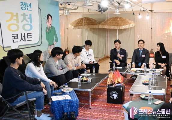 | ▲지난해 10월 청년 경청콘서트에서 이민근 안산시장과 김문수 경제사회노동위원회 위원장 등 10여명이 참여해 안산스마트허브 내 청년 노동자 근무 여건 등 논의하고 있다.(사진=안산시) |